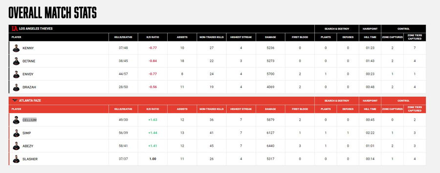 The second mode was ‘Search and Destroy’, in which Faze literally destroyed their opponents 6-0. The final hope of LA Thieves was ‘Control’ mode in the third set. But they lost this as well, ending the match 3-0 in favor of Atlanta Faze.
