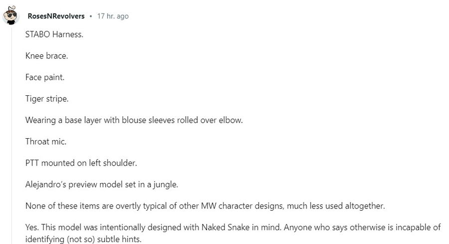 Meanwhile, other users also agreed with the Redditor after looking at the above comparison. “Definitely a nod to naked Snake,” wrote one individual while explaining their reason.