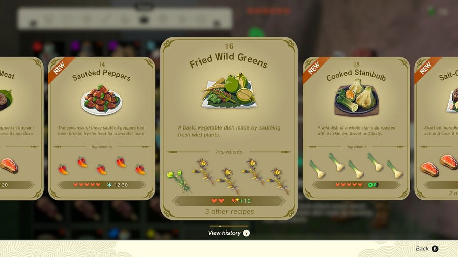 Fried Greens are fun. Just mix some Hyrule Herbs, Acorns, and Chickaloo Tree Nuts and cook them; they will recover Link’s health when he needs them. But adding some mighty thistles would give players an attack boost.