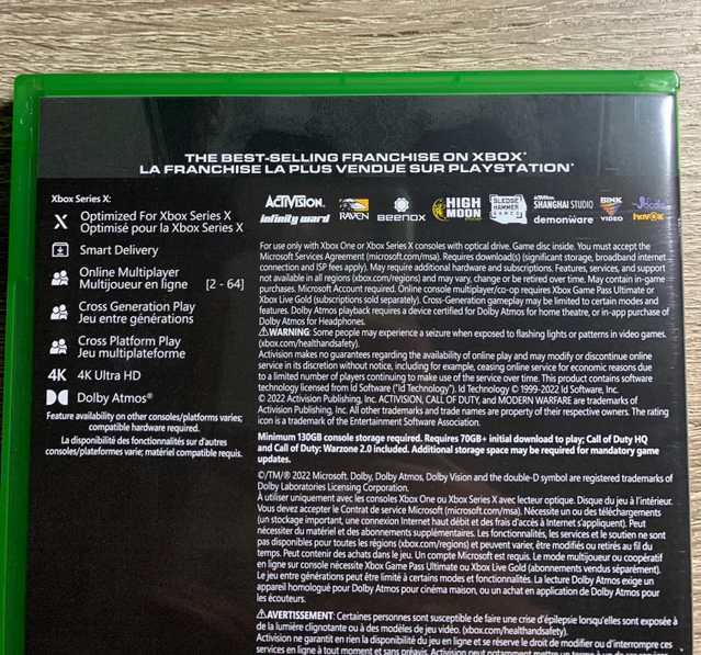Activision boldly claims to be the “best-selling franchise” on the physical copies of the MW2 games. But the next part of the text depends on the format of the copy. If the copy is for the Xbox, then it will have “best-selling franchise on Xbox” and vice versa for the PlayStation.