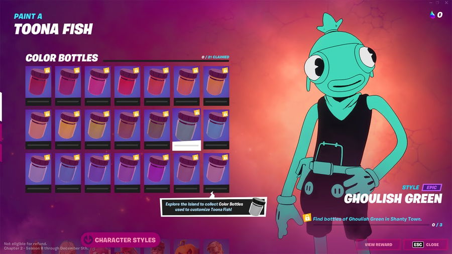 Although the Toona Fish skin is highly customizable, you need to do some searching and gathering. Firstly, players must find Color Bottles. After procuring those, players will get the ability to pick from the styles, which can be unlocked with Rainbow Ink. However, players need to explore Fortnite island to collect these items.