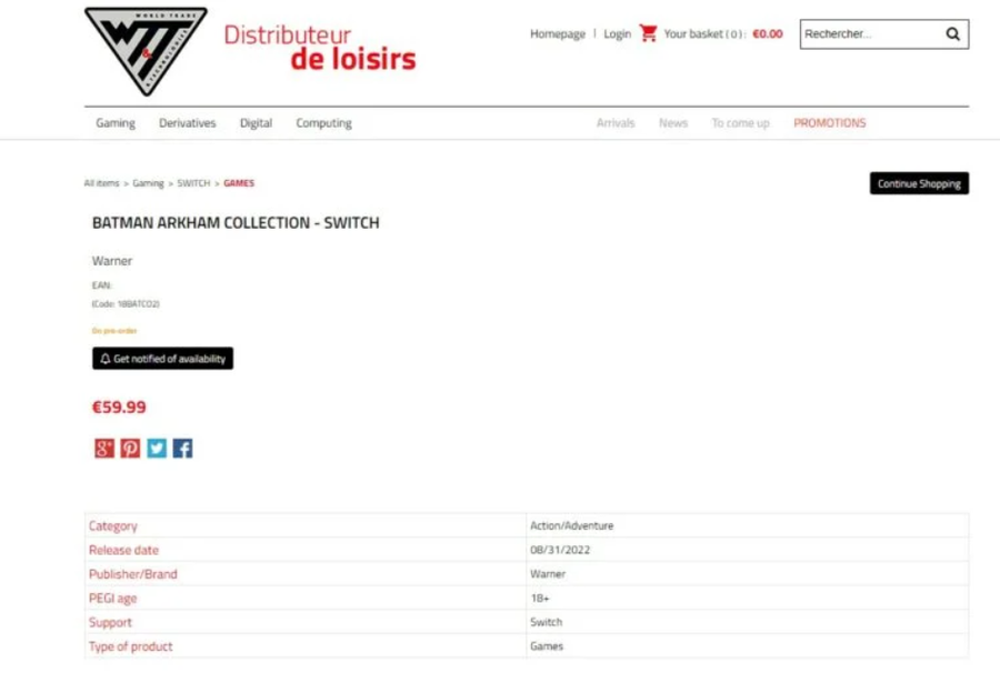 However, according to a recent listing on French retailer WTT’s website, Switch players could soon experience Gotham in its entirety. The website shows a listing for Batman Arkham Collection, set for release on the Nintendo Switch for €59.99.