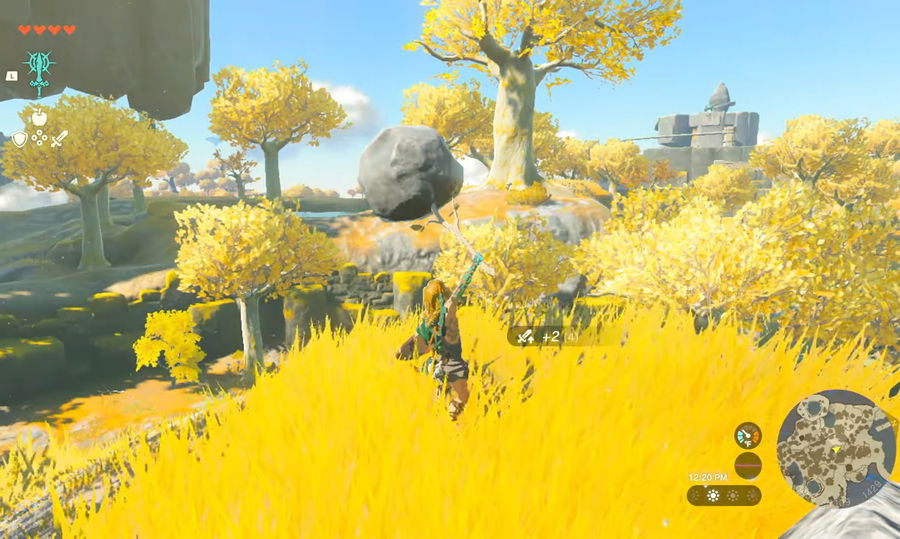 Eventually, Aonuma reaches a wide lake and instead of swimming through it, he uses an ability called Ultrahand to attach a bunch of logs together and create a raft. In addition, fans were introduced to some new items available in the game. Link used Ultrahand to attach those fans to his raft and creates a nifty motorboat! Players can build themselves rafts, boats, flying machines, and even cars using this ability.