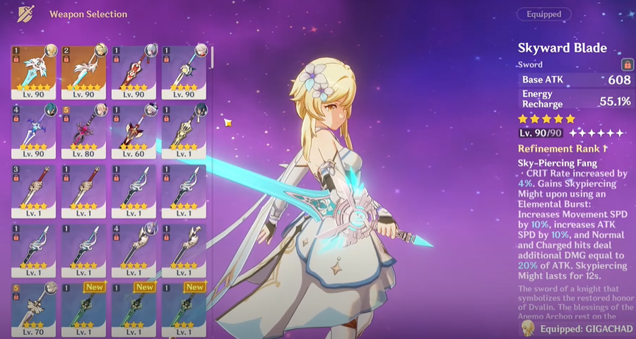 Since your primary strategy is to get as much energy recharge as possible, you must focus on weapons equally. All the weapons with energy recharge sub-stat are splendid choices. The best weapons would be Skyward Blade, Favonius Sword, Festering Desire, and Sacrificial Sword. Will you plan on building Electro Traveler? Let us know in the comments down below.