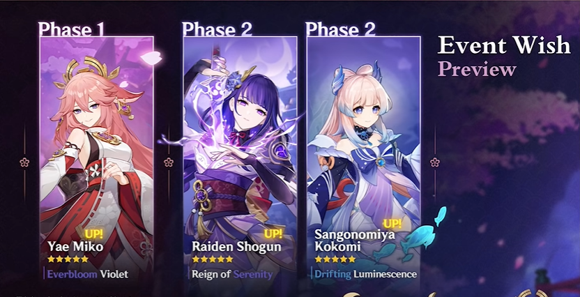 In phase 2, we will see re-run banners of both Raiden Shogun and Sangonomiya Kokomi. Indeed, it’s very surprising that miHoYo is releasing Kokomi so early, especially when her banner sales were very low. However, after the release of a new mechanic, Corrosion, users are noticing the importance of healers. Thus, if you need a significant healer to complete Spiral Abyss floor 12, pull for Kokomi in the next update.