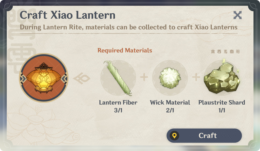 To craft the Xiao Lantern you will need the following ingredients. You can farm these items on the map by doing these simple everyday things.