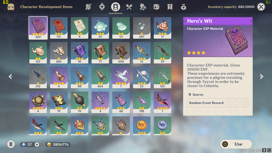 Each type of character will demand a specific type of book to further their talents. Ganyu will require the “Diligence” series books that you can farm only after you hit adventure rank 26. You can farm these books from their own domain located in Jueyun Karst in Liyue area. However, you can only farm them on Tuesday, Friday and Sunday, so allot your resins wisely.