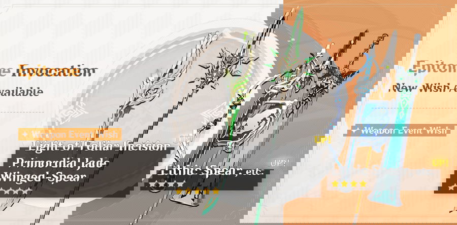 Now, what is Genshin Impact without the utopian world’s weapons that heavily damage the enemies and help players in paving their way to victory? Therefore, the weapon banner will carry the 5-star event exclusive weapon Light of Foliar Incision (Sword), and the 5-star weapon Primordial Jade Winged-Spear (Polearm) will be released in the banner.