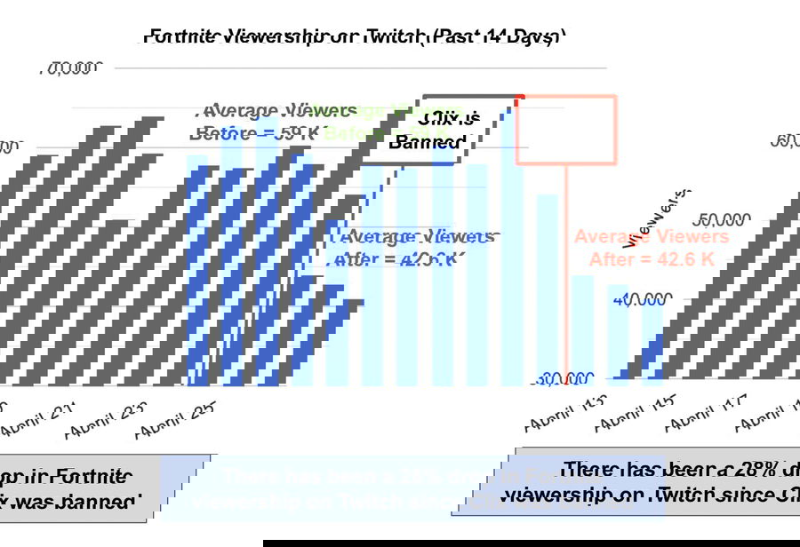 While some critics have come out and said the data is being manipulated in favor of Clix, they are stating the loss in viewership is not exactly due to the ban, but it may be a contributing factor. They believed the loss in viewership is due to competitive tournament schedules, with FNCS Major Qualifier 2 just ending on April 23.