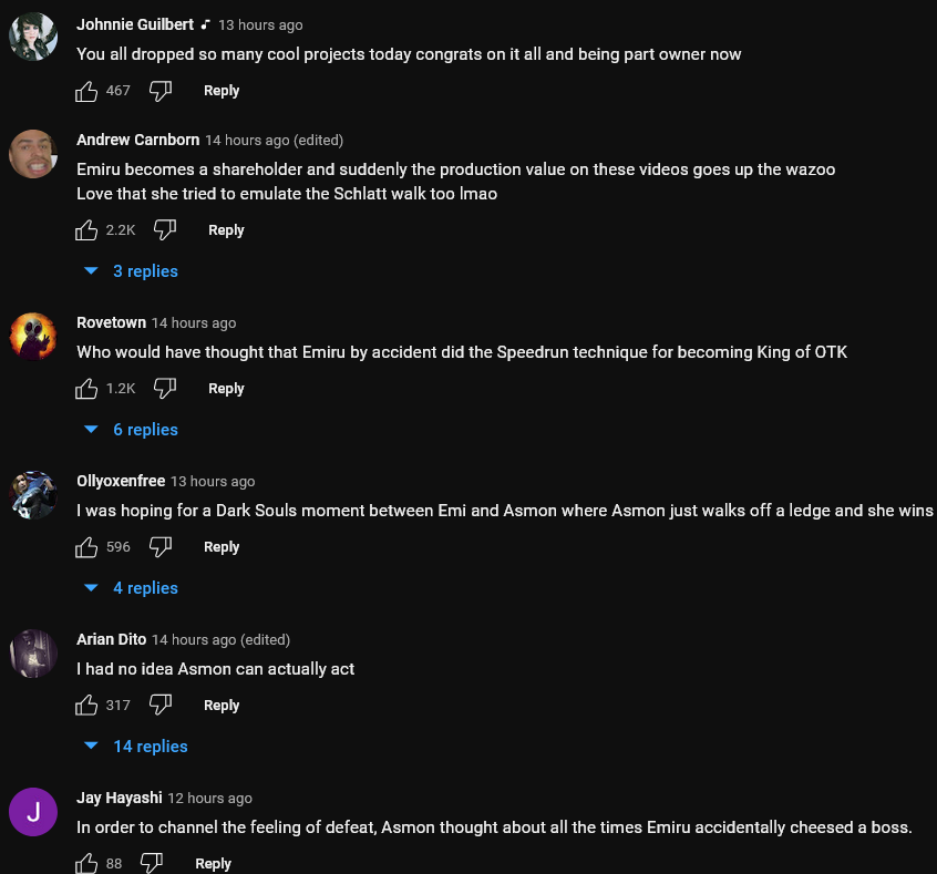 Fans were excited to hear about the announcement from the fans. They also appreciated the skit video for this announcement. Some fans even joked about Emiru becoming a co-owner in just a year.