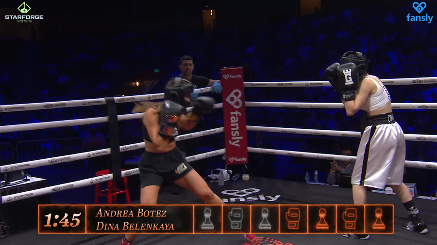 Twitch streamer Andrea Botez gets defeated by WGM Dina Belenkaya at the Chessboxing event organized by Ludwig
