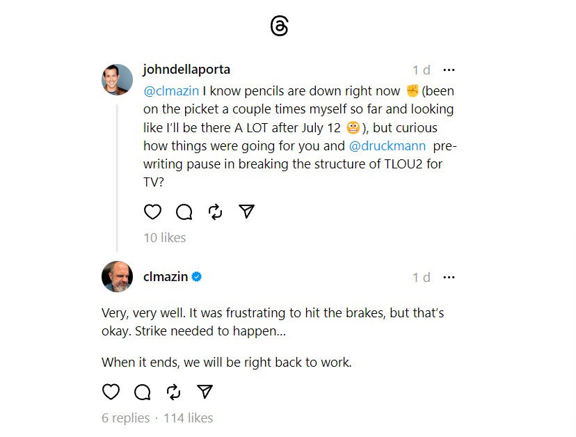 However, Chris Mazin‘s recent statements confirmed that he has finished writing for the Season 2 of The Last of Us. He spoke about his frustration as initially, his writing was going well but was impacted due to the strike, on his Threads account.