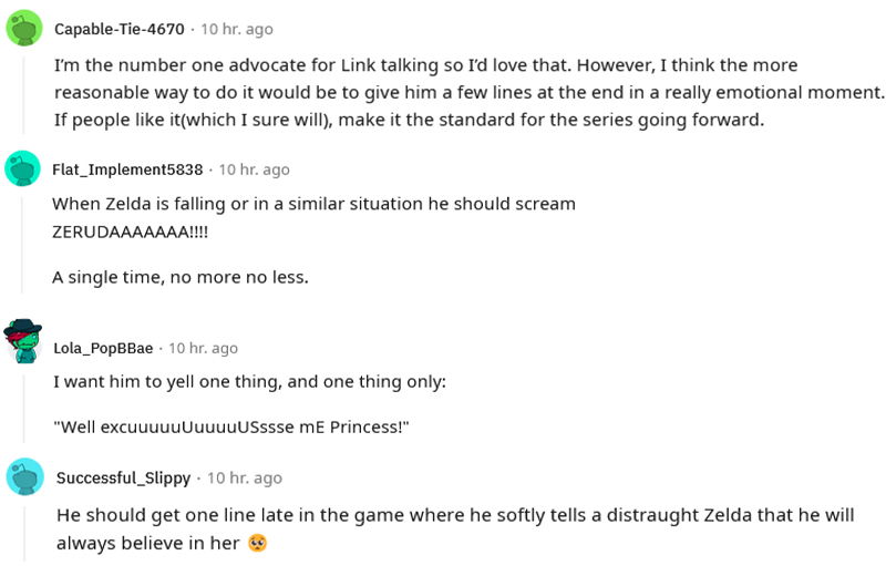 However, some fans wanted to see Link speak for a small change. But they just want a few lines for this iconic Nintendo character and not a full-fledged conversation. They would mostly like to see him talk to Princess Zelda.