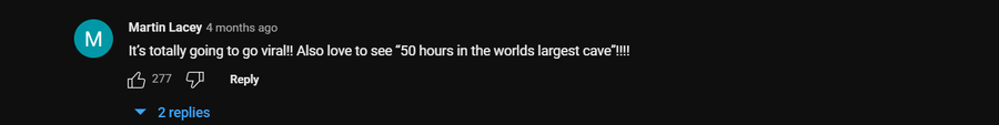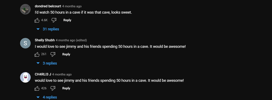 However, MrBeast denied the idea saying that it would not go viral. Tyson asked the fans if it would go viral to prove his point. And the fans did voice their views. In the comment section, a person said, “I’d watch 50 hours in a cave if it was that cave, looks sweet.” Another person said, “50 hours in a cave sounds awesome.” One can see the reactions of the people below: