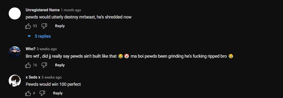 Whereas PewDiePie fans were talking about how much ripped their favorite content creator is.
