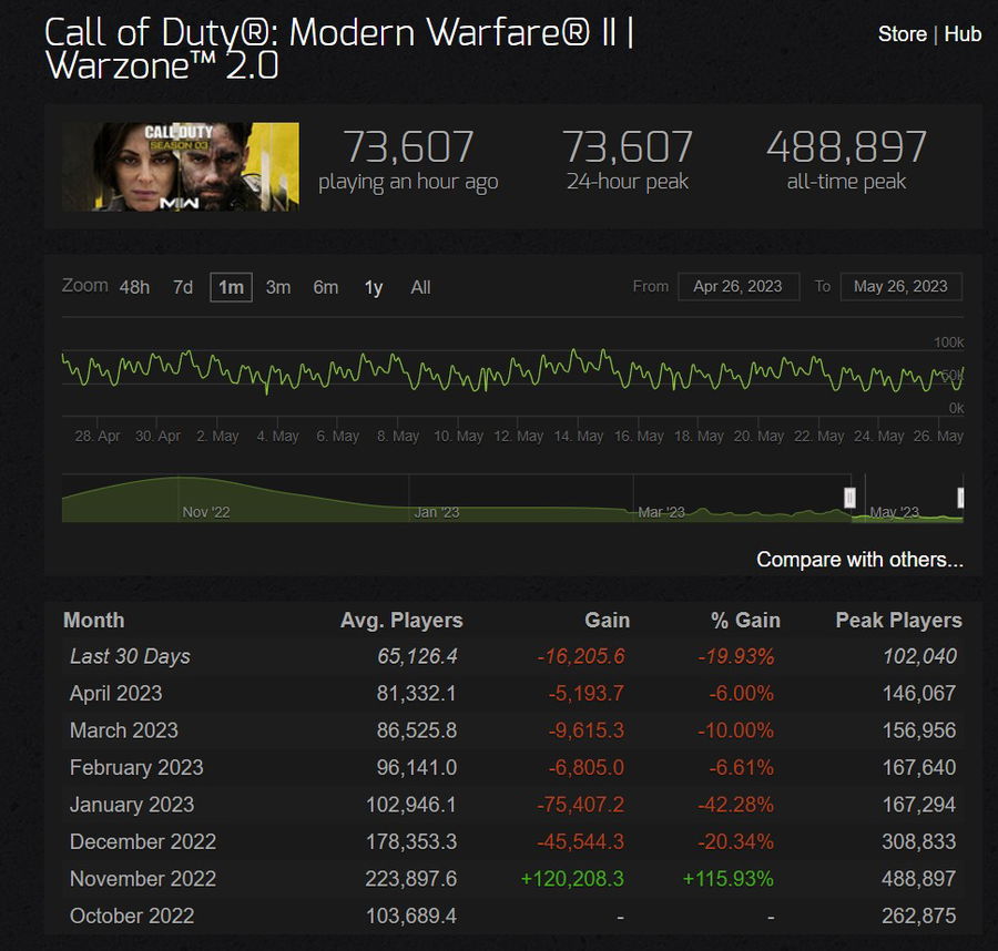 Generally it’s not possible to track the player count for the battle royale. Thanks to the release of the game on Steam, though, now it is very easy to see how the title’s been performing since its awaited release in November 2022. And it looks like the situation has gone from bad to worse for the sequel to the original Warzone.