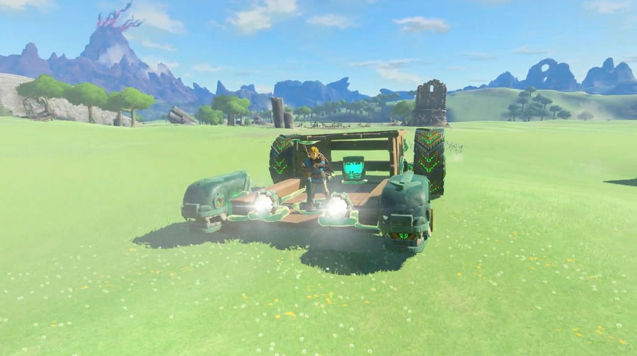 And also, he is now controlling a bunch of makeshift contraptions, which we cannot really call vehicles. And finally, one last time we hear Zelda saying “Please, lend him your power!” as we see him reaching for her as she falls into a chasm.