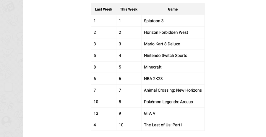 With Splatoon 3 bringing home the bread, Nintendo is having one of the best business years in its history. After all, they have not just been successful with Splatoon, as five of their titles have ranked in the Top 10 list. Games like Mario Kart 8 Deluxe, Nintendo Switch Sports, Animal Crossing: New Horizons, and Pokémon Legends: Arceus are helping the franchise churn massive profits.