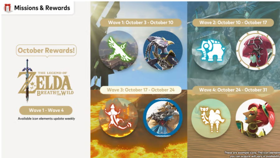Now let’s move on to The Legend of Zelda: the Breath of the Wild, as there are icons from this masterpiece too. However, the Zelda icons have four waves to release a different set of icons. These four categories represent the four in-game elements: Earth, Fire, Water, and Wind.
