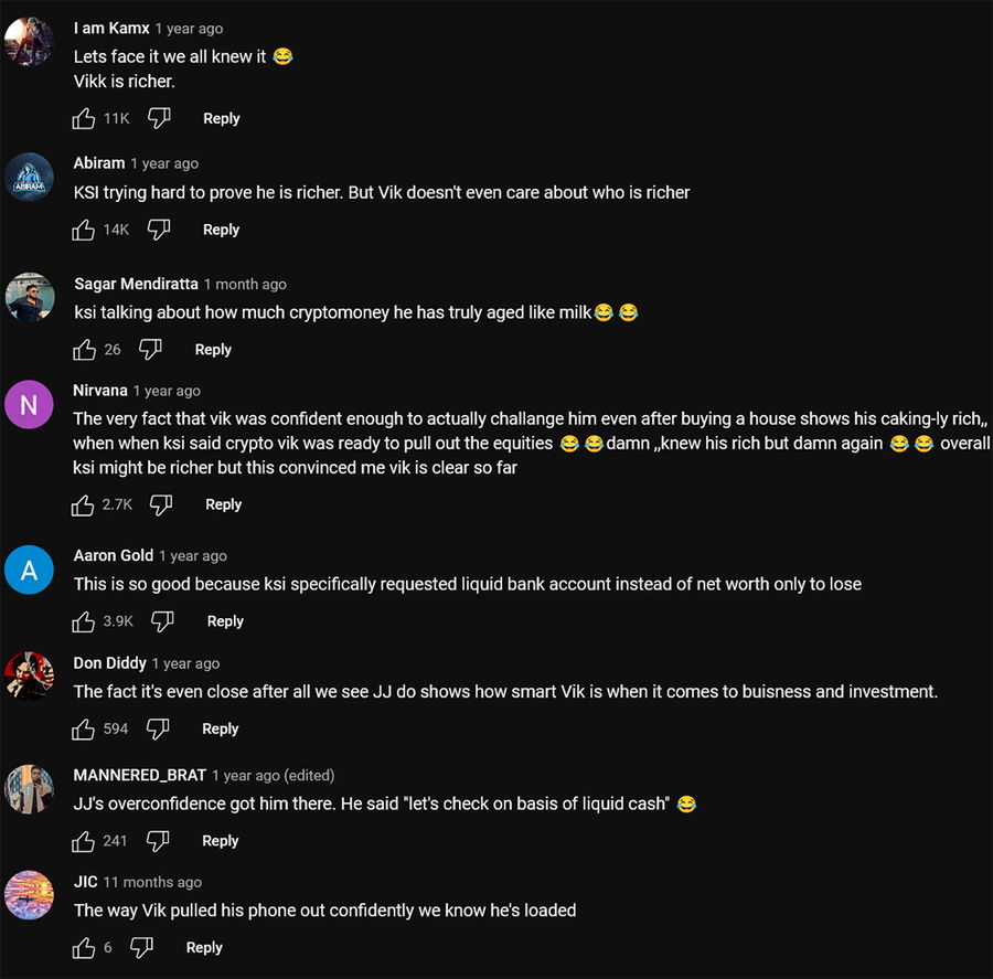 Fans commended Vik for making wise investments and saving. Meanwhile, numerous viewers mocked Olatunji for challenging Vik to a liquidity comparison only to lose to him. Some followers also criticized KSI for bragging about his crypto investments, as he eventually lost money in crypto.