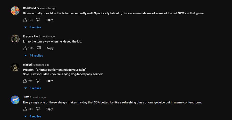 Remember the time when Biden was questioned by a Fox reporter about inflation? The president was caught on the hot mic calling the reporter “Stupid son of a b***ch”. This was integrated into the Fallout fan-made video. And interestingly, it was synced perfectly with the speech during the Diamond City Mayoral debate.