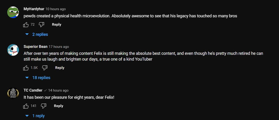 Though he has retired, Felix still has not forgotten his community. That is why he has been posting videos on his channels whenever he gets a chance. And the fans appreciate this dedication from him. They showed their love towards the veteran content creator through comments under the YouTube video.
