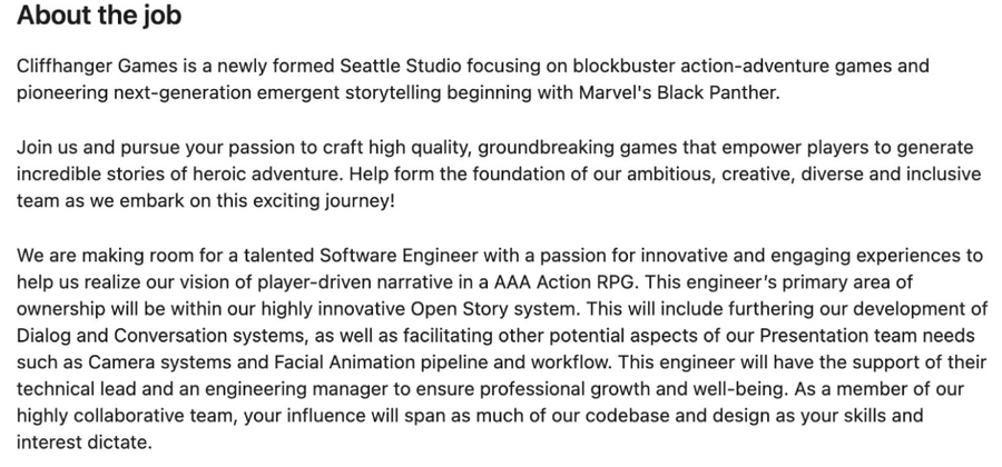 Now, a job posting by the new studio seems to have given away more details about Black Panther, that has Redditors spiraling. Cliffhanger Games seem to have a few vacancies that are looking to get experienced developers onboard for the Wakandan adventure.