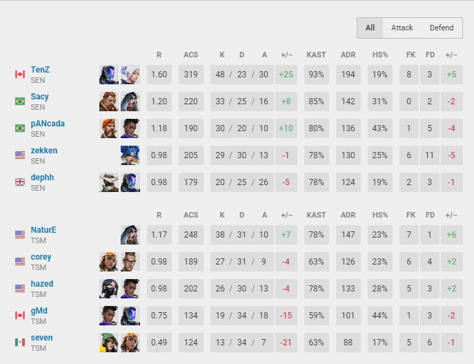 The next map brought back the vintage TenZ. He was back on Jett and what gameplay it was! He went on to take 32 kills in Pearl. In the two maps, TenZ’s tally was 48 kills!