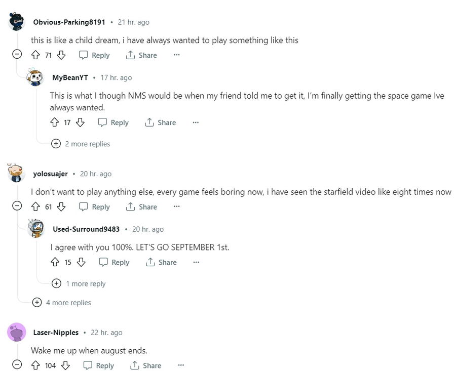 It seemed that some of the fans are totally willing to wait till September after they saw Starfield Direct, which captured their interests totally- “For real: we should be happy the release is almost two months away, not sad. Other games usually show a lot of stuff years before they’re ready, so the community is left with nothing but idle speculation (which eventually leads to disappointment when such expectations aren’t met or the game is downgraded).”