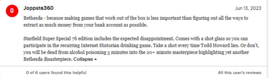 While a large group of fans eagerly awaits the game’s release, there are always individuals ready to pour hate onto highly anticipated titles, even before they are available to the public. One such individual has gone to the extent of crafting a fake negative review on a reputable site, attempting to spread misconceptions about Starfield.