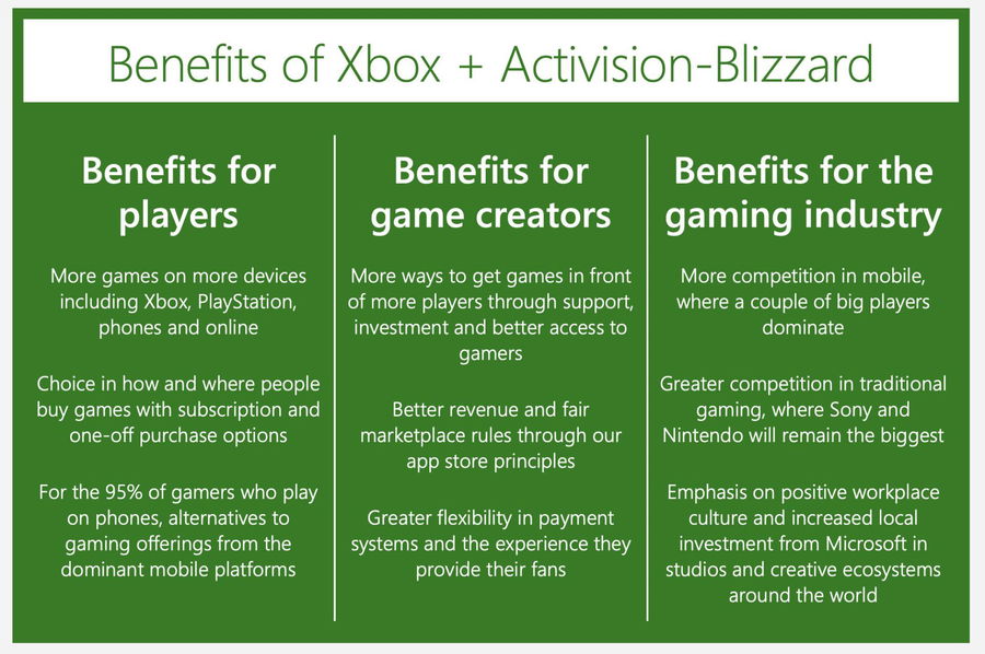 As per the above image, the company declares the benefits that the deal would bring. Vividly, they explained how the acquisition will benefit players, creators, and the gaming industry as a whole. Stating the advantages, they portray how the ease of gaming and its fruitfulness will be reached by their efforts. All in all, the technology giants have a firm stance on the acquisition and intend to do better for the people, as per their intentions.