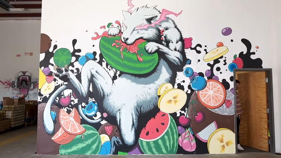 The artistic YouTuber joined hands with Beast Philanthropy’s executive director, Darren Margolias, to customize the warehouse. Zach decided to paint a huge white tiger on a wall with lots of fruits. The YouTuber explained his mural’s theme, which is Beast Philathrophy’s logo, and the wall was near the food pantry.