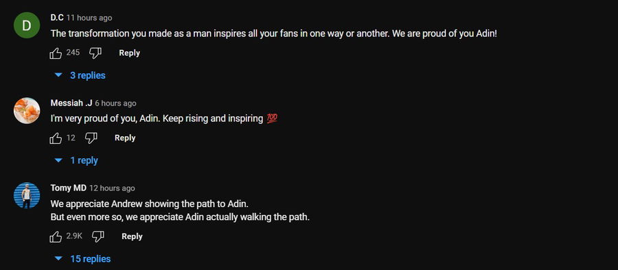 People who saw the video, especially his fans, were showering love on the streamer. They were seen appreciating the changes that Adin had made in his life.