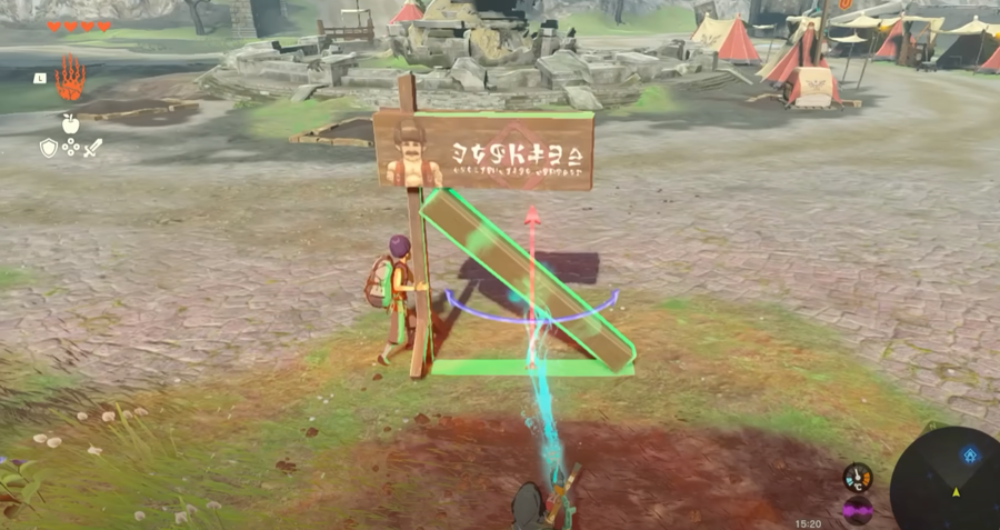 Near the Castle, players encounter an NPC named Addison. We can spot this character holding a sign promoting Hudson constructions. By assisting Addison and constructing support for his sign using the Ultra-hand, players can bring him great joy. As a token of appreciation, Addison rewards the player with 20 Rupees. Addison can be found throughout the entire game, and helping him each time will earn the player an additional 20 rupees.