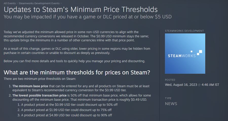 Not only must developers reconsider absolute game prices, but they must also reconsider discounts in order to maintain transparency of the new minimum pricing policy.