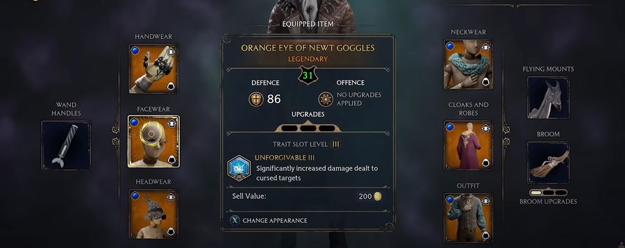 Now moving on to the traits, go for the tier three unforgivable traits. Yes, most people tend to favor the Concentration tier 3 trait, but for being a pure dark lord you need to equip the unforgivable traits. Equip this trait for every gear you are using. This would largely benefit the unforgivable spells like Avada Kedavra.