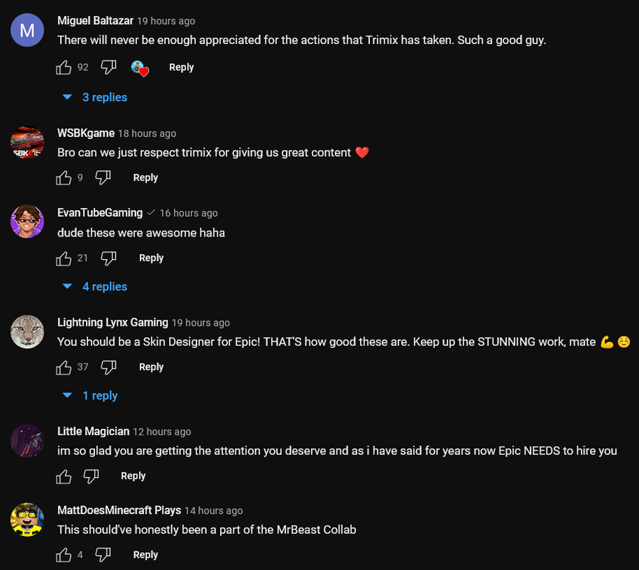 The fans were awestruck like the MrBeast’s crew upon seeing the four custom skins. They praised the YouTuber for creating such Fortnite skins. One fan even claimed that Epic Games should hire him as a skin designer for their famous battle royale games. Let’s look at some of those comments.