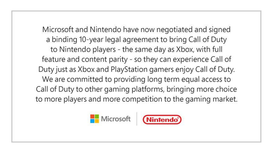 “We’ve now signed a binding 10-year contract to bring Xbox games to Nintendo’s gamers. This is just part of our commitment to bring Xbox games and Activision titles like Call of Duty to more players on more platforms,” tweeted the vice chair and president of Microsoft, Brad Smith. In the tweet, he also featured an official digital announcement of the partnership.
