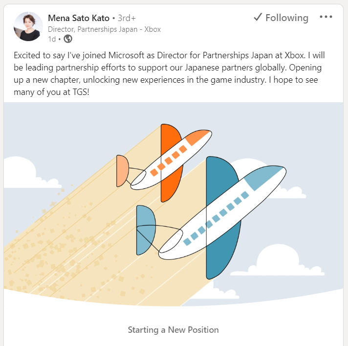 In her recent LinkedIn post, Kato shared the news of her joining as the Director of Partnerships Japan. She stated that she will be leading partnership efforts to support Japanese partners globally. Mato exclaims, “Unlocking new experiences in the game industry.”
