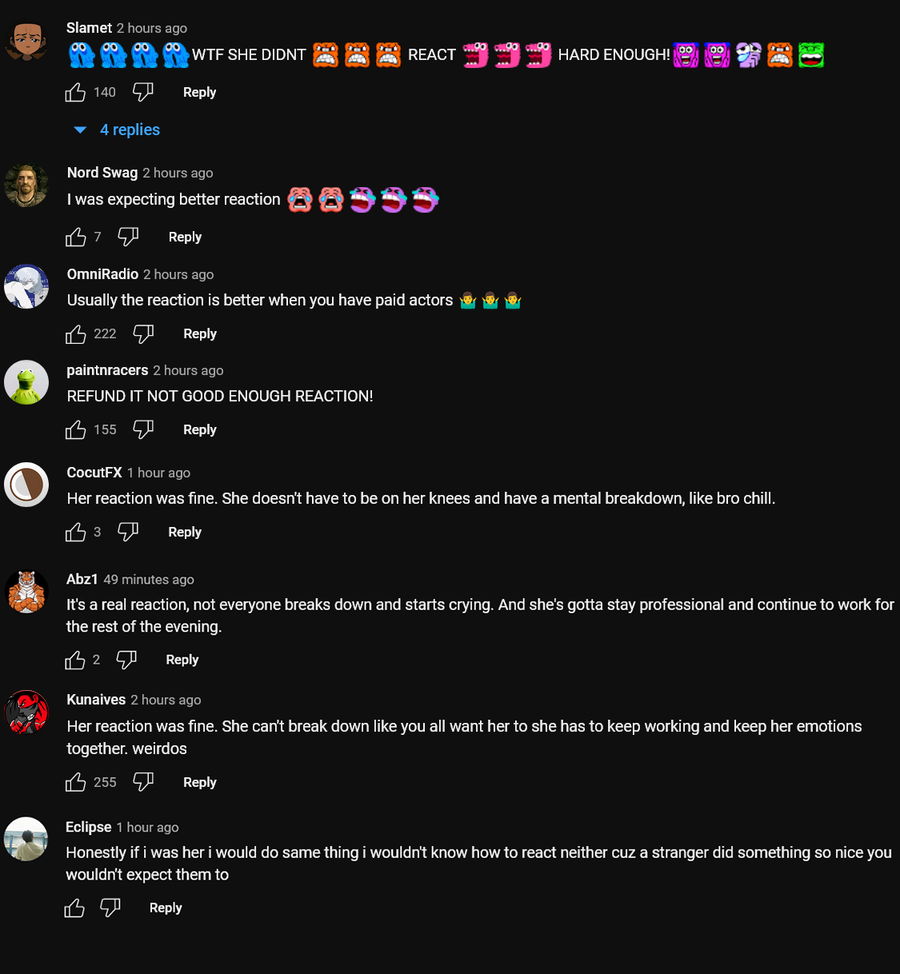 There are some diehard xQc fans who weren’t impressed by the waitress for her reaction, as they were expecting some over-the-top reaction. But she got some knights in shining armor in the comments who explained that she also has a job, so breaking down after receiving a big tip might affect her job.