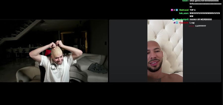 As soon as Tate started complimenting the streamer, Adin interrupted him. He then revealed that the bald head that he was seen in was actually a fake. He had put on a fake bald cap over his head to surprise Tate.
