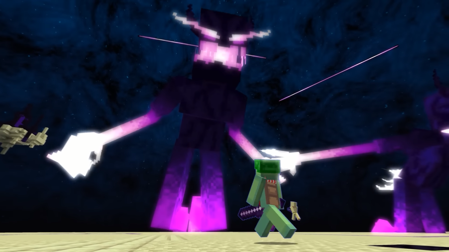 Nearing its end, the challenge had to be amped up to match the ‘impossible death run.’ And to escalate the level appeared none other than Karl Jacobs’ Minecraft character. But he wasn’t playing as any normal-sized character, because he was huge and yielded a deadly large sword. Unfortunately, as he said, “a king goes down with his castle.”