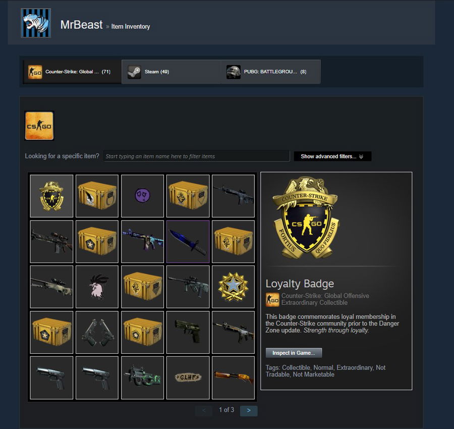 But before his career boomed, even before his videos went viral, did you know that the internet sensation was a CSGO fan? Let us take a look at the supposed MrBeast steam inventory.