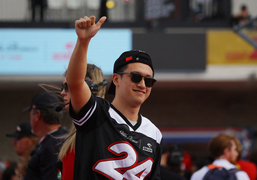 Formula One F1 – United States Grand Prix – Circuit of the Americas, Austin, Texas, U.S. – October 23, 2022 Alfa Romeo’s Guanyu Zhou acknowledges the spectators ahead of the race REUTERS/Brian Snyder