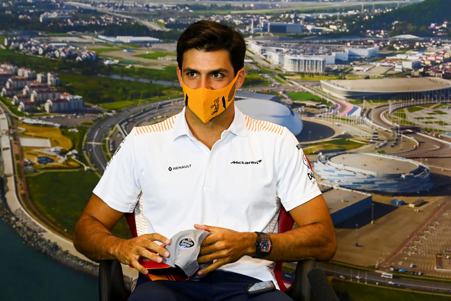 Formula One F1 – Russian Grand Prix – Sochi Autodrom, Sochi, Russia. September 24, 2020 McLaren’s Carlos Sainz Jr. during the press conference FIA/Handout via REUTERS
