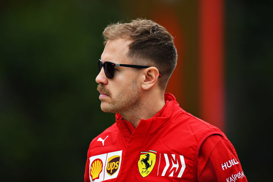 SHANGHAI, CHINA. Sebastian Vettel of Ferrari walks in the Paddock. F1 Grand Prix of China. Shanghai International Circuit in Shanghai, China. (Photo by Clive Mason/Getty Images)