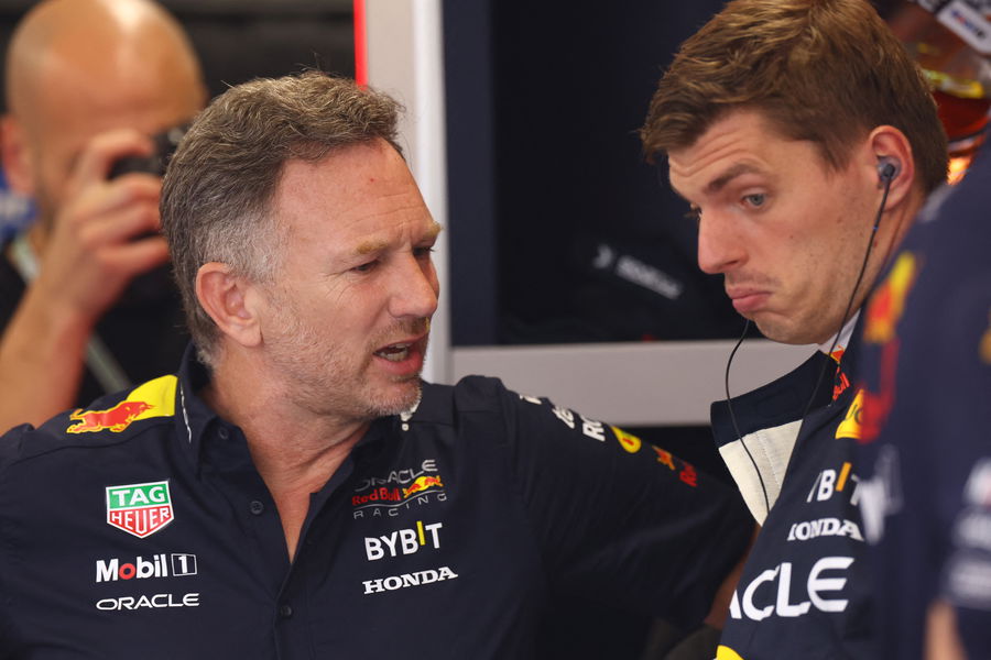 Formula One F1 – Hungarian Grand Prix – Hungaroring, Budapest, Hungary – July 19, 2024 Red Bull team principal Christian Horner talks to Max Verstappen before practice REUTERS/Bernadett Szabo
