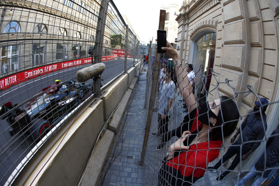 Formula One F1 – Azerbaijan Grand Prix – Baku City Circuit, Baku, Azerbaijan – June 4, 2021, A person takes a photograph as Mercedes’ Valtteri Bottas passes during practice REUTERS/Maxim Shemetov