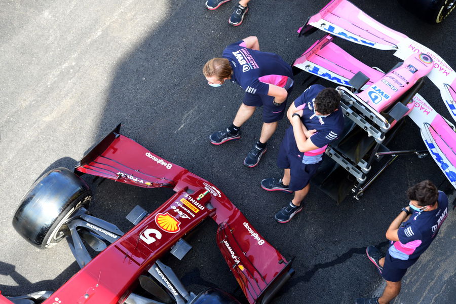 Formula One F1 – Tuscan Grand Prix – Mugello, Scarperia e San Piero, Italy – Racing Point mechanics look at the Ferrari car ahead of the Tuscan Grand Prix REUTERS/Jennifer Lorenzini