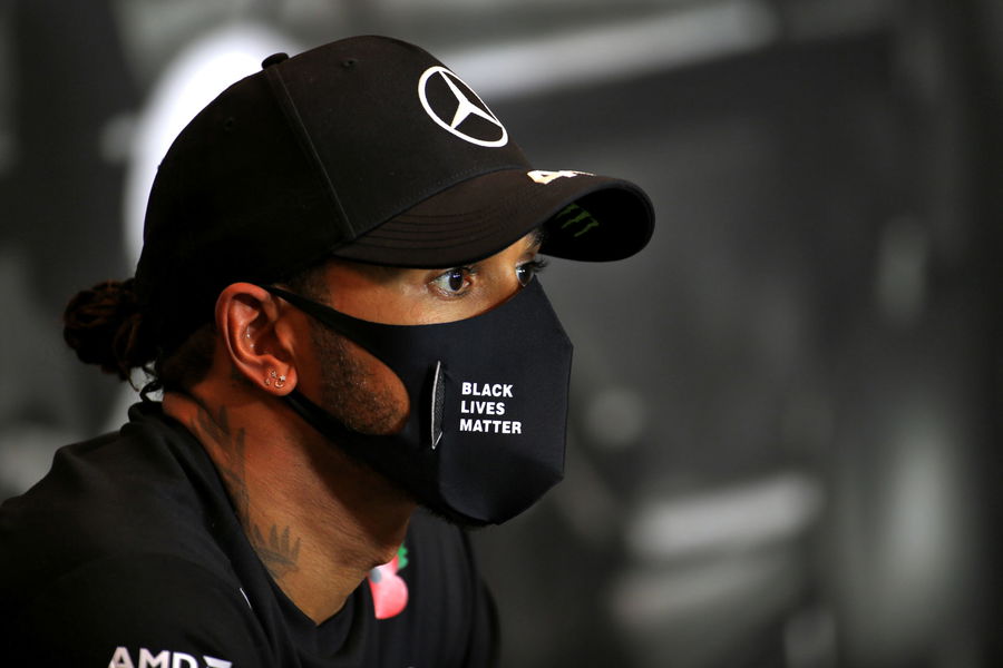 Formula One F1 – Emilia Romagna Grand Prix – Autodromo Enzo e Dino Ferrari, Imola, Italy – October 31, 2020 Mercedes’ Lewis Hamilton during the press conference after qualifying in second position FIA/Handout via REUTERS